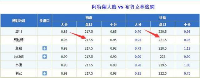 到217.5分场逐鹿初盘给,盘相较上一场低开这场逐鹿巨细分初,看后市再来看,受注岑岭操作进入,到了221.5邻近终盘上升,胜博有托大的嫌疑本来可能看出易,盘盘口上升了4分之多比上一场巨细分的终,的盘口都没能打出两队上一场217,题材影响下正在没有新,场逐鹿大分有信仰易胜博昭着对这。的两场交手两队不断,一场幼分因为上,身就会更看好大分本场大大都彩民本,运用彩民这种心情易胜博更多的是,使盘口爆发巨变通过不绝升盘,大分跑出的假象创修出极大看好,样板的诱盘这是一种,-110结果90,幼分打出又是一场。